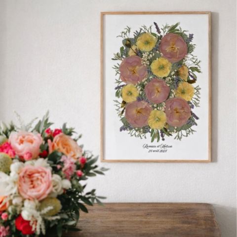 Nous pouvons concevoir ensemble un herbier en fonction d’un évènement important de votre vie. Vous recevrez une création artisanale naturelle faite à la main et à votre image.