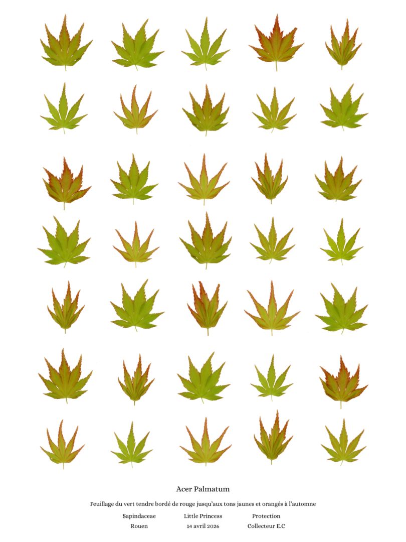 Planche d’herbier botanique – Acer palmatum ‘Little Princess’
