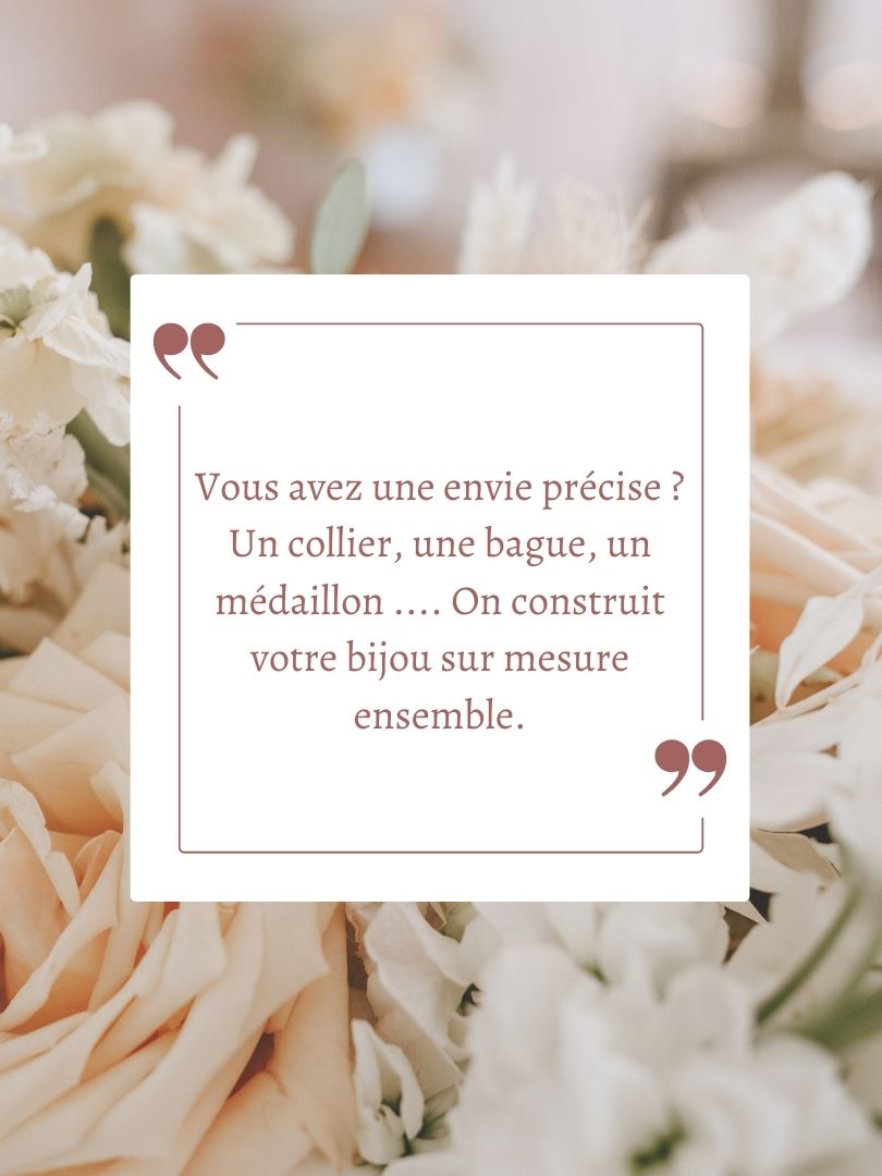 Vous avez visualisé un bijou dans la gamme bijoux fantaisie et vous souhaitez l’adapter pour votre bijou issu de votre bouquet contactez moi pour étudier la faisabilité ensemble.